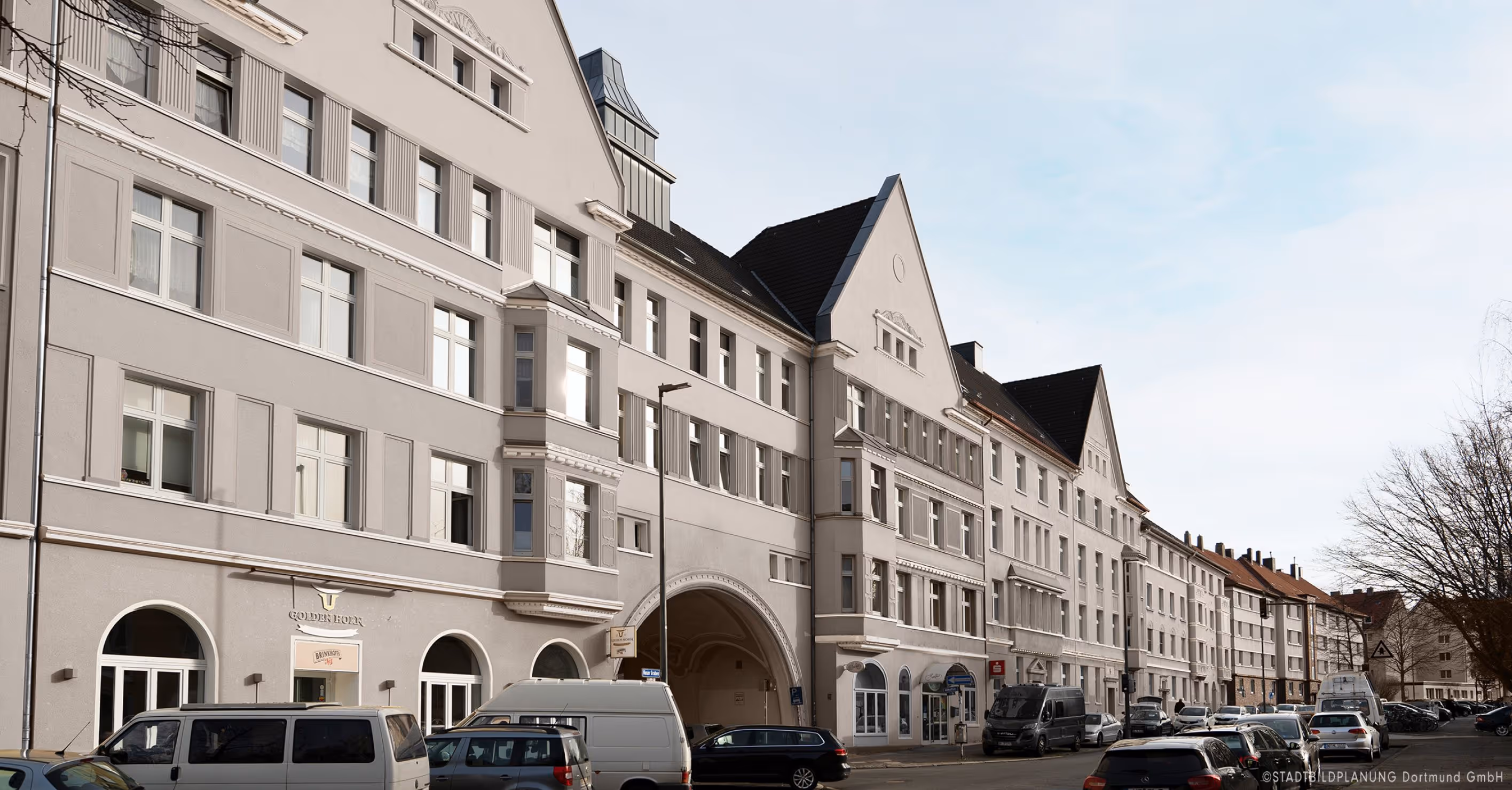 Im Zusammenspiel mit den gewachsenen Baumstrukturen entsteht heute ein atmosphärisch dichtes, authentisches und dennoch zeitgenössisches Quartier, das Dortmund in dieser Form kein zweites Mal bietet – ein Beispiel für nachhaltige Quartiersentwicklung, sensible Bestandsarchitektur und verantwortungsvolle städtebauliche Transformation.