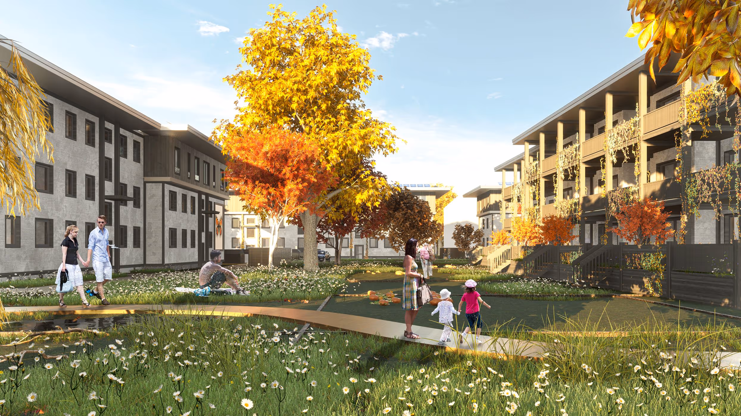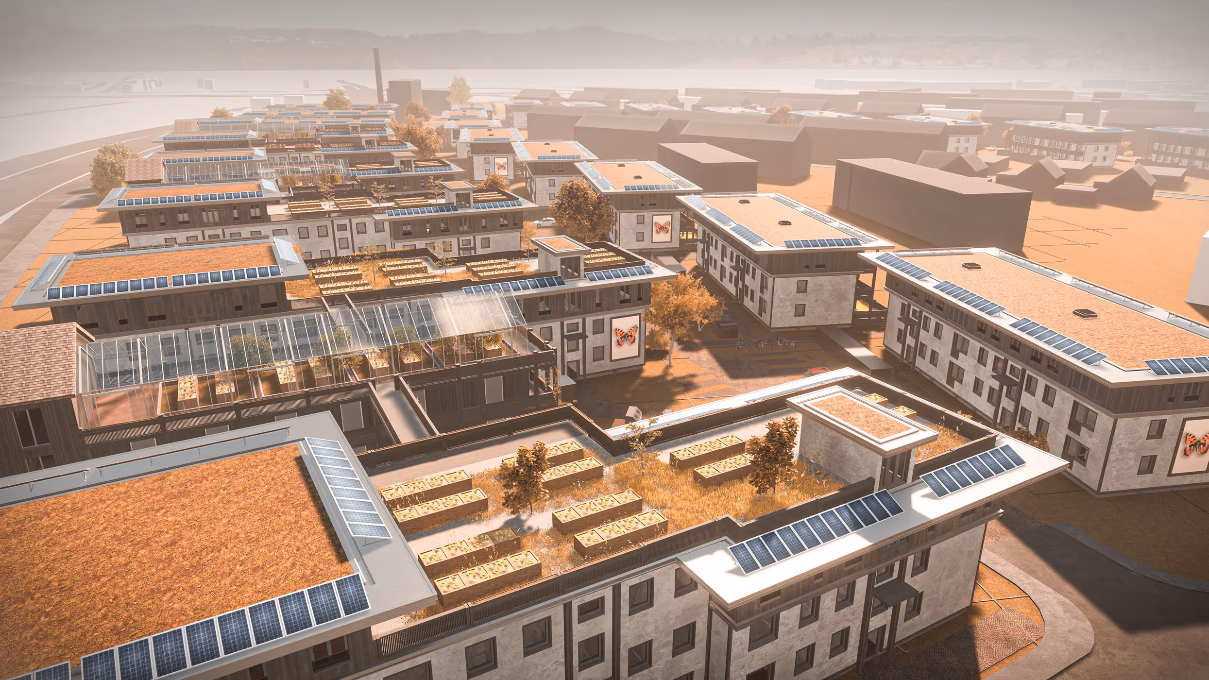 „Bergmannsgrün“ transformiert eine klassische 60er-Jahre-Siedlung in Dortmund-Huckarde zu einem zukunftsweisenden, energieeffizienten Quartier. AGH Studios entwickelte ein ganzheitliches, ökologisches Konzept für Wohnen, Aufstockung, Freiräume und ein innovatives Quartiersgartensystem im Rahmen der IGA 2027.