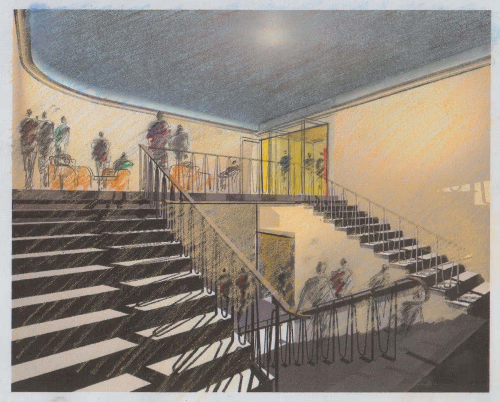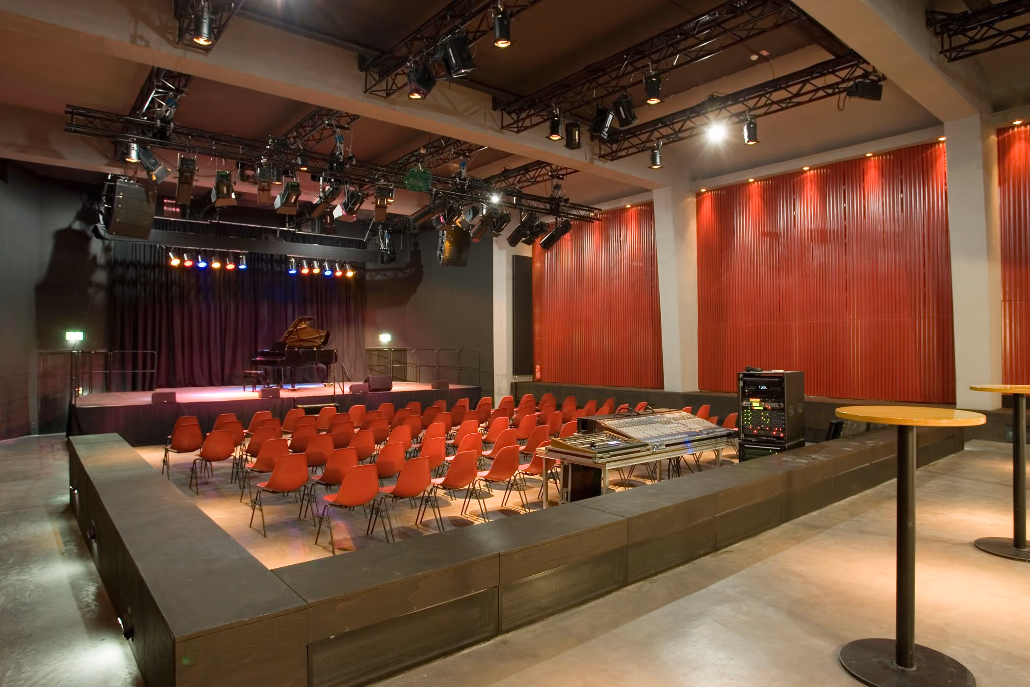 Der große Aufführungssaal im ersten Obergeschoss wurde gemeinsam mit alliierten Architekten funktional und nüchtern gehalten, um technische Präzision und maximale Flexibilität zu ermöglichen. Durch die Neuorganisation konnten 200 Gäste untergebracht werden – ein zentraler Beitrag zur wirtschaftlichen Zukunft des Clubs. Ergänzt wurde der Saal durch eine Bar und einen kleineren Clubbereich für intime Konzertformate.