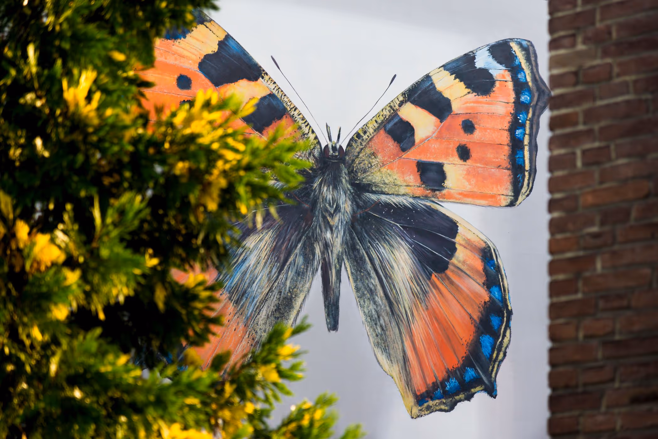 Die Darstellung der regionalen Falter in einem überdimensionierten „Passepartout“ erzeugte eine starke visuelle Wirkung – zugleich poetisch, zugleich präzise. Die schimmernden Farben, die Anmutung eines wissenschaftlichen Präparats und die liebevolle Herausarbeitung der Artenvielfalt führten dazu, dass die Fassade des Bürogebäudes plötzlich neue Bedeutung, Präsenz und emotionale Tiefe gewann.